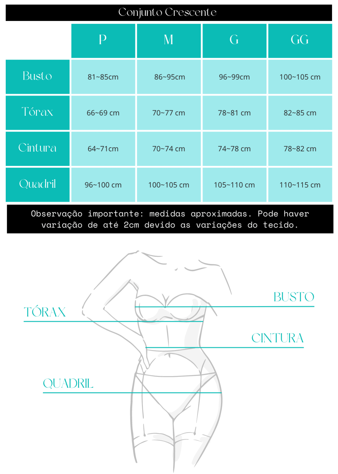 Conjunto todo em tule bordado importado com aro para maior sustentação. Sem forro, com transparência e regulagem nas alças.